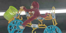 猴兒騎自行車裝載垃圾桶造型心情倍兒爽