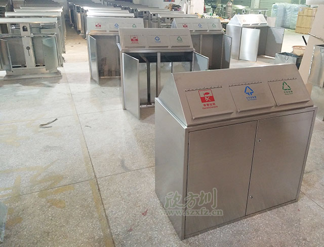 • 產品材質:欣方圳環(huán)保分類垃圾桶采用新型的剪鈑下料,折彎、沖壓、焊接、打磨、等工藝: 表面經過除油、噴砂防銹處理后,再進行酸洗磷化處理;表面清理干燥后整體進行靜電噴涂,涂層厚度達到 90um,經過流水線高溫固化爐固化后再出爐冷卻,加工后的塑粉附著力強,不易剝落;