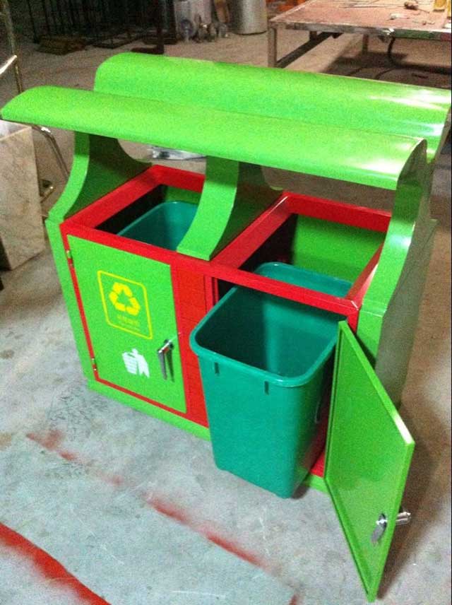 欣方圳鋼制戶外分類垃圾桶均選用優質的冷軋鋼板經噴砂處理去油去銹后,鋼板表面抗紫外線丙稀酸油漆多層噴涂,