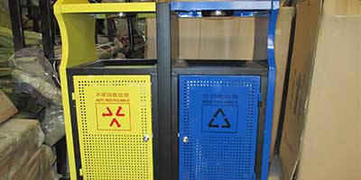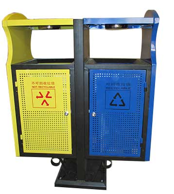 鋼制分類環保垃圾桶均選用優質的冷軋鋼板經噴砂處理去油去銹后,鋼板表面抗紫外線丙稀酸油漆多層噴涂,沖孔通風效果好桶內干爽防銹蝕。