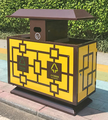 欣方圳戶外仿古典風(fēng)分類(lèi)垃圾箱細(xì)節(jié)展示