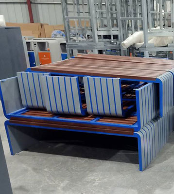 • 產品材質:金屬戶外園林休閑椅定制廠家采用鋼制結構與木條組裝制作,椅條由客戶定制可選進口實木(防腐木.紅胡桃.山樟木等)、還可選擇鋼結構、玻璃鋼、鐵藝、塑木等。