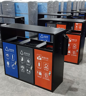 戶外三分類垃圾桶-戶外鋼制分類桶定制廠家